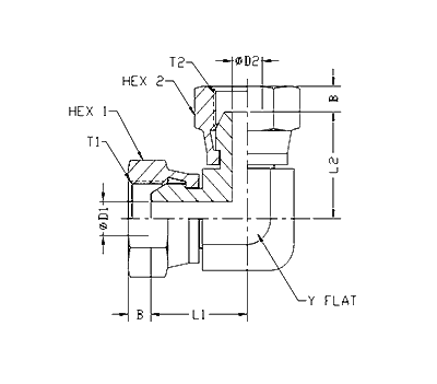 ITEM | P/N | T1 | T2 | L1 | L2 | D1 | D2 | B | HEX 1 | HEX 2 | Y FLATS |