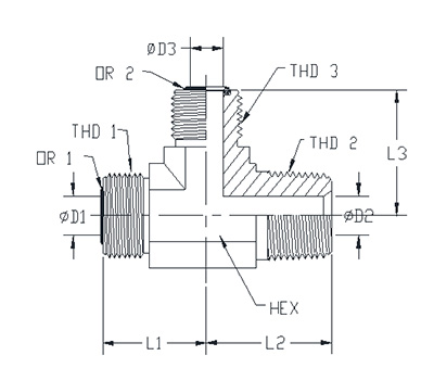 ITEM P/N HEX THD 1 THD 2 THD 3 L1 L2 L3 D1 D2 D3 OR 1 OR 2