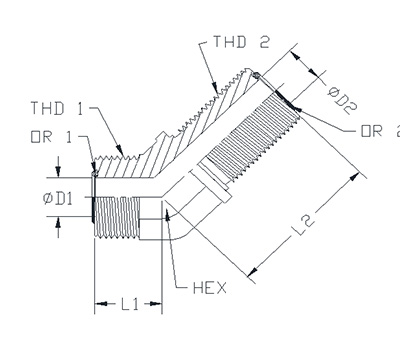 ITEM P/N HEX THD 1 THD 2 L1 L2 D1 D2 OR 1 OR 2