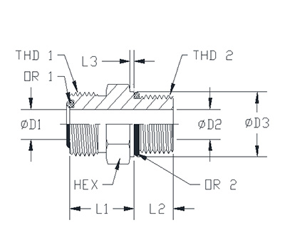 ITEM P/N HEX THD 1 THD 2 L1 L2 L3 D1 D2 D3 OR 1 OR 2
