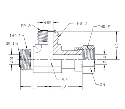 ITEM P/N HEX THD 1 THD 2 THD 3 L1 L2 L3 D1 D2 D3 OR 1 OR 2 SN