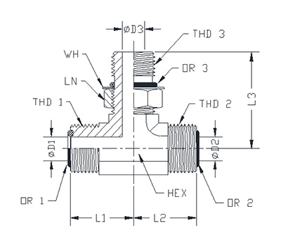 ITEM P/N HEX THD 1 THD 2 THD 3 L1 L2 L3 D1 D2 D3 OR 1 OR 2 LN WH OR 3
