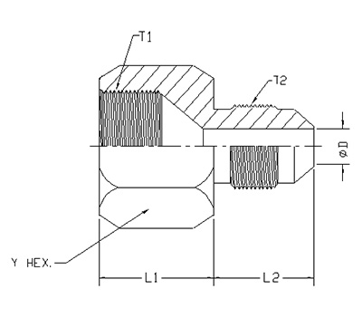 ITEM P/N T1 T2 D L1 L2 Y HEX
