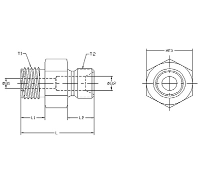 ITEM P/N T1 T2 L L1 L2 D1 D2 HEX