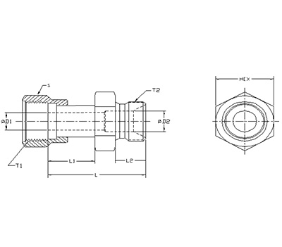ITEM | P/N | T1 | T2 | L | L1 | L2 | D1 | D2 | S | HEX |