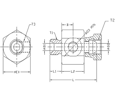 ITEM P/N T1 T2 T3 L L1 L2 B D1 D2 D3 MIN. HEX
