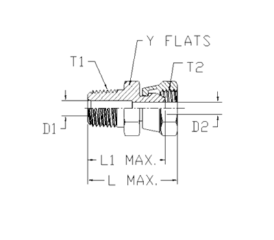 ITEM | P/N | Y FLATS | T1 | T2 | L | L1 | D1 | D2 |