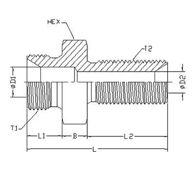 ITEM P/N T1 T2 D1 D2 L1 L2 B L HEX