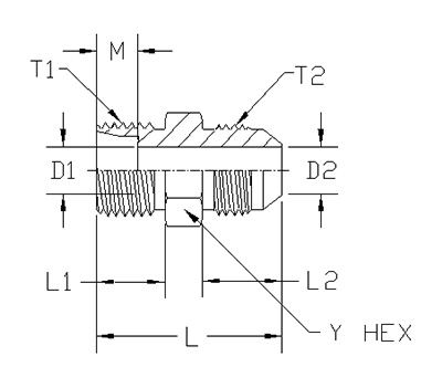 ITEM P/N Y HEX T1 D1 T2 D2 L